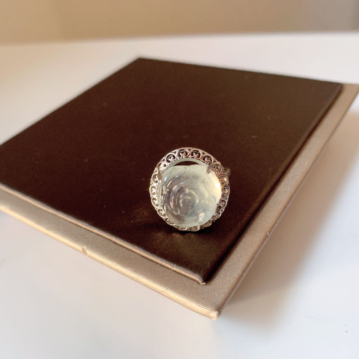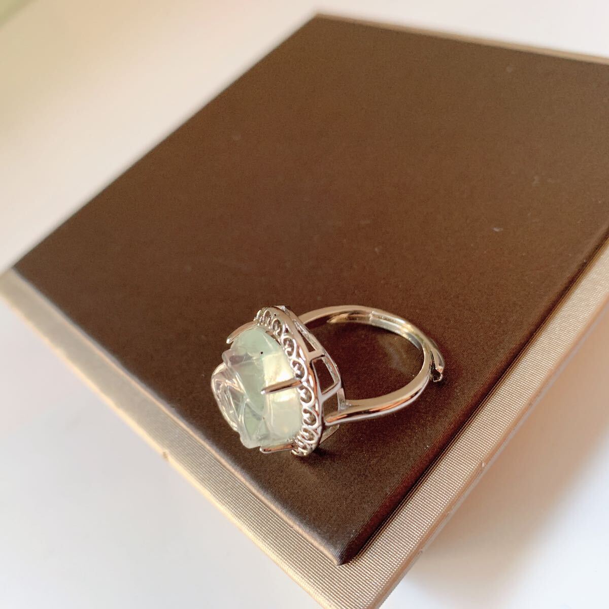◇フローライト◇螢石◇指輪◇リング◇フリーサイズ◇花形◇彫刻◇天然石◇パワーストーン◇巾着袋付◇プレゼントにも 024R31805