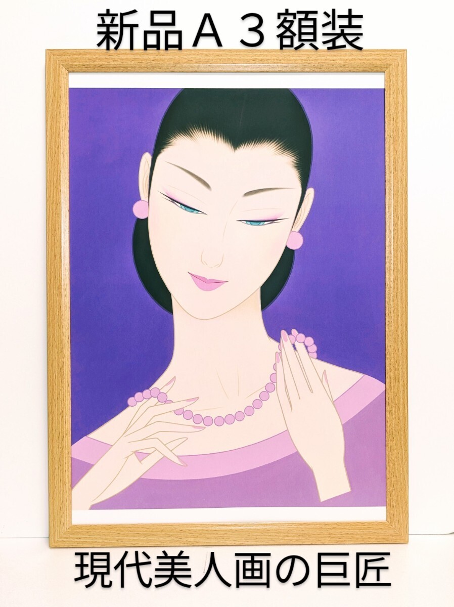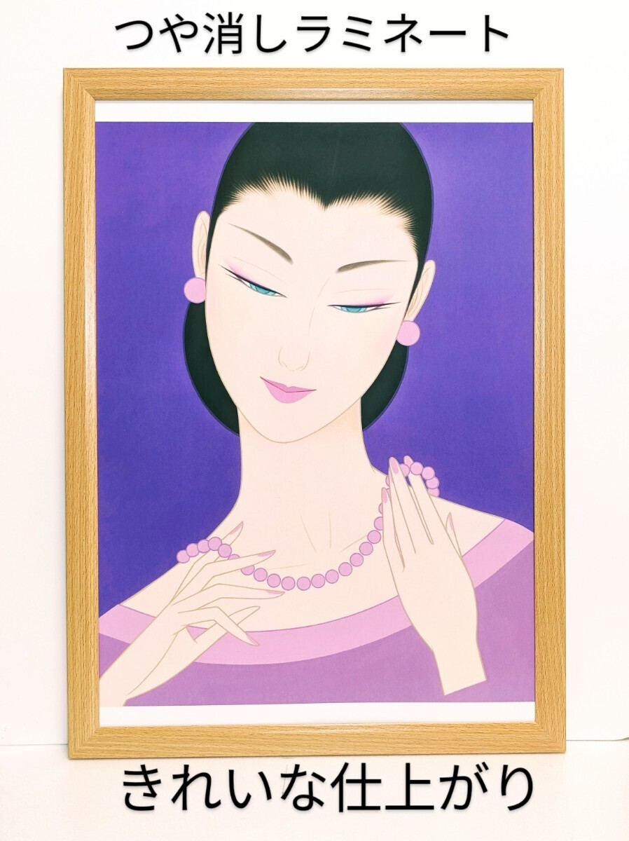 超貴重品! 鶴田一郎 (真珠の首飾り) 新品A3額装・大きさが違う つや消しラミネート加工 プレゼント付き 送料無料
