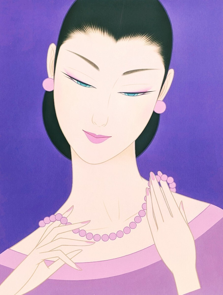 超貴重品! 鶴田一郎 (真珠の首飾り) 新品A3額装 つや消しラミネート加工 プレゼント付き