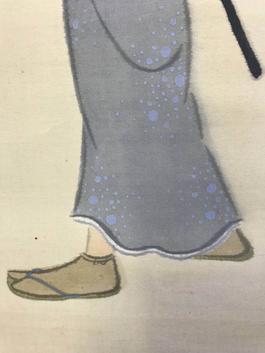 【作品状態】 本紙は絹本肉筆です。本紙は薄汚れ、多少の汚れシミあります。表装は概ね良好です。