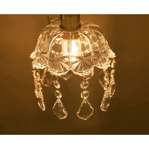 飾るだけで雰囲気のある空間に。 先端についてるパーツはクリスタル、シェード部分はガラスです。 最初から添付している電球はLEDです。 |