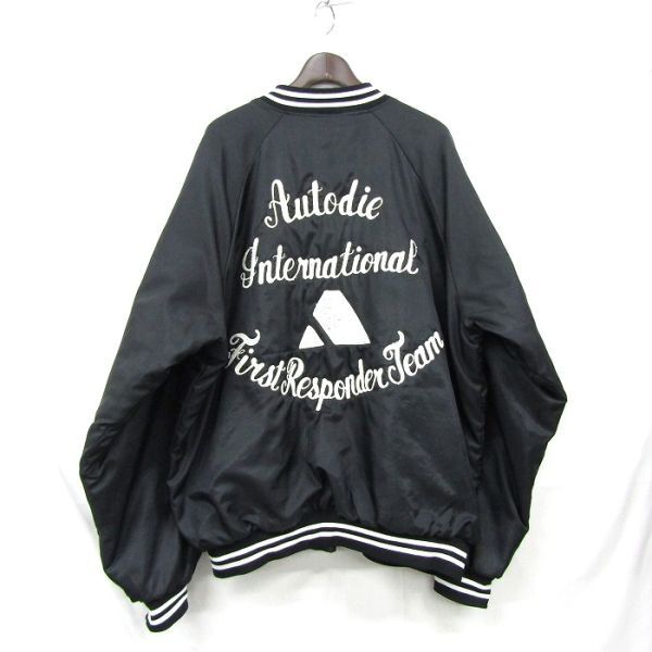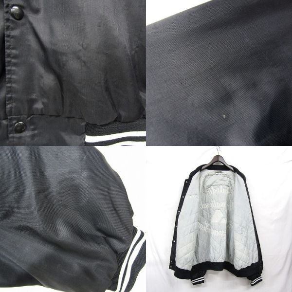 USA製 ビックサイズ XL~ HARTWELL チェーンステッチ 刺 スタジアム ジャンパー ナイロン ジャケット ブラック 古着 ビンテージ 4M0306