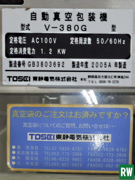 | 真空包装機 東静電気 トーセイ トスパック V-380G 100V 厨房 真空パック 業務用 |