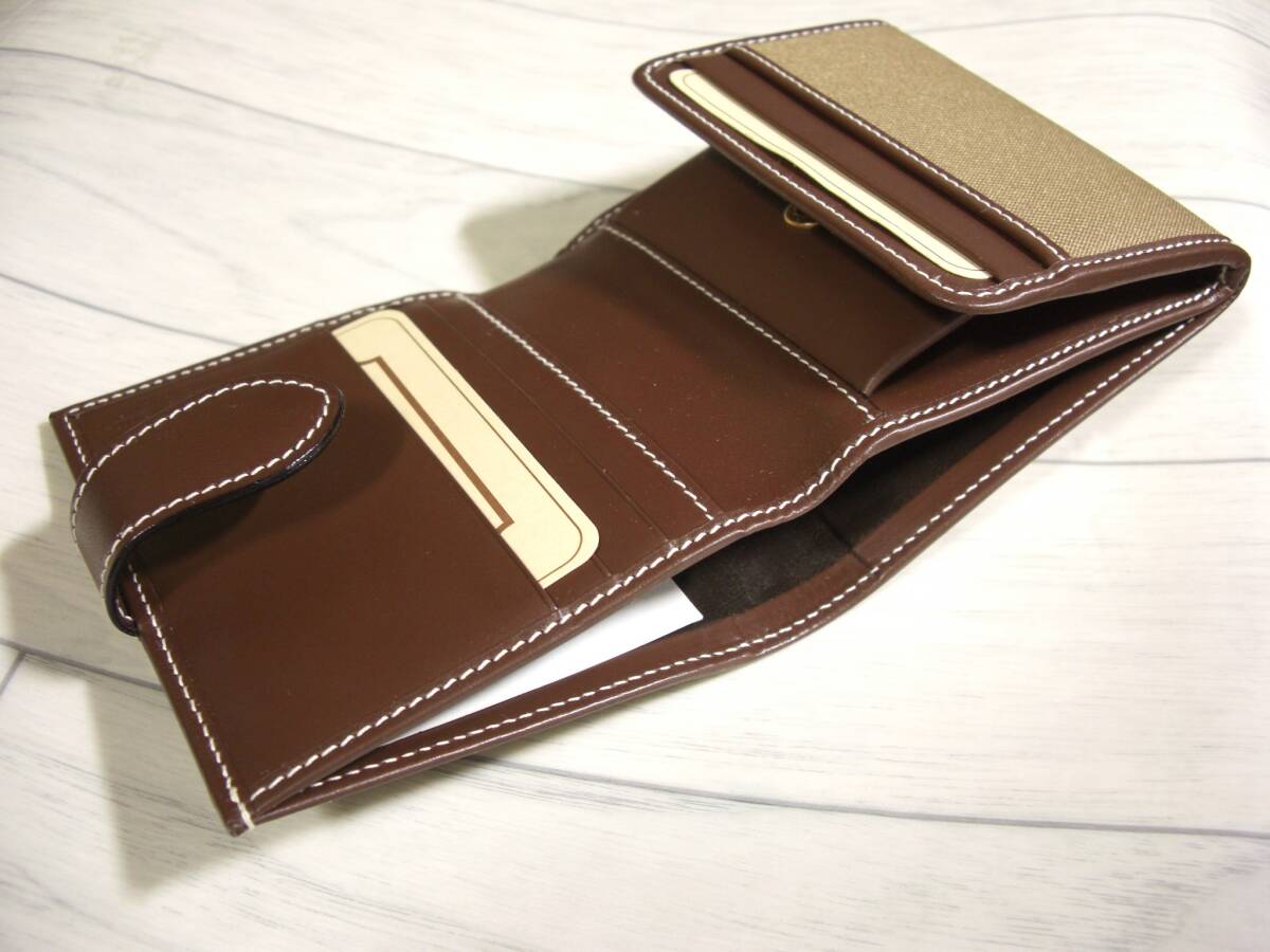 ♪♪♪このデザインでは、人気のサファリ・カーキカラーの『小銭入れ付き3つ折り財布』で御座います。