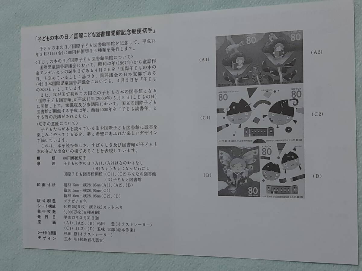 子どもの本の日 国際子ども図書館開館記念 H12 切手シート1枚と解説書 H