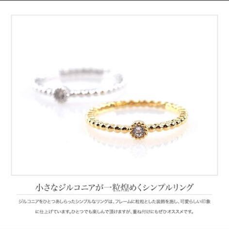 ジルコニアをひとつあしらったシンプルなリングは、フレームに粒粒とした装飾を施し、可愛らしい印象に仕上げています。