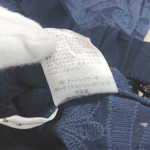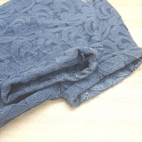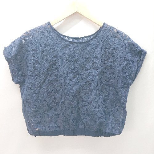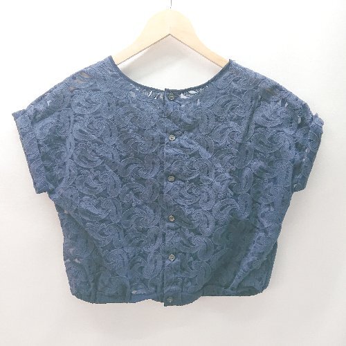 ◇ KBF ウエストゴム ペイズリ-柄 フレンンチスリ-ブ カットソーブラウス サイズONE ネイビ-系 レディース E