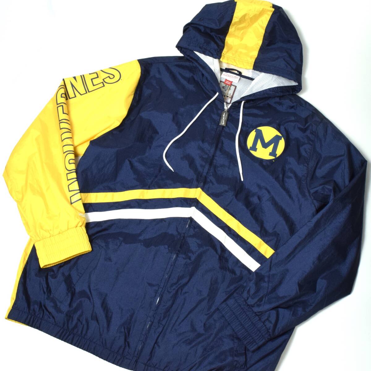 MICHIGAN NCAA FULL ZIP WINDBR EAKER ミシガン アンディナイアブル フルジップウインドブレーカー、裏地はメッシュ地を使用したライトな着用感の一着です。 | ||||||||||||||||