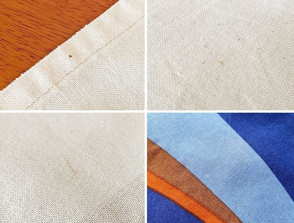 | コンディション | こちらは、ビンテージのお品物です。若干のシミ汚れや僅かな色落ち、ほつれ、折りシワ等は見受けられるものの、いずれも著しく美観を損ねる目立ったダメージではございません。経年変化の少ない比較的良好なコンディションを保っております。 *ファブリック単品での販売です。 ※特筆すべきコンディションは出来るだけ記載させて頂きますが、細かい擦れや傷、汚れ等を完全にお伝えする事は出来ません。画像をご確認の上、ご入札をご検討下さいませ。 ※取扱説明書や保証書等は記載が無い限り付属いたしません。 |