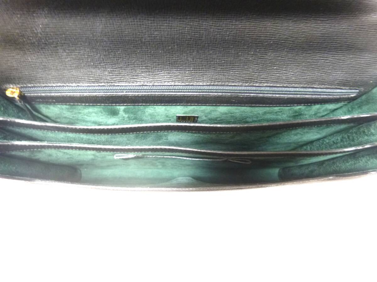 商品説明 | 激レア!!ダンヒル dunhill ビジネスバッグ LF6210A 未使用、もしくは、数回使用程度の極美品です。 ◎30年以上前の商品で、ほぼ見掛ける事がない激レア商品です! 品番:LF6210A MADE IN ITALY サイズ:約W408mm×H307mm×D100mm(最大140mm) カラー:ブラック、インナー:ブラック&グリーン 素材:カーフレザー(型押し)、インナー:スエード 外側:オープンポケット×1 内側:メインポケット×3、ファスナー付きポケット×1、カードポケット×1、ペンホルダー×2 商品状態(写真参照) ○外側 表皮:僅かに、薄いスレがありますが、ほぼ綺麗です。 金具:ダイヤルロック部分に、僅かにチリキズがありますが、ほぼ綺麗です。 角スレ:ほぼありません。 ○内側 表皮:ほぼ綺麗です。 付属品:元箱(経年の汚れ・痛みあり) | ||