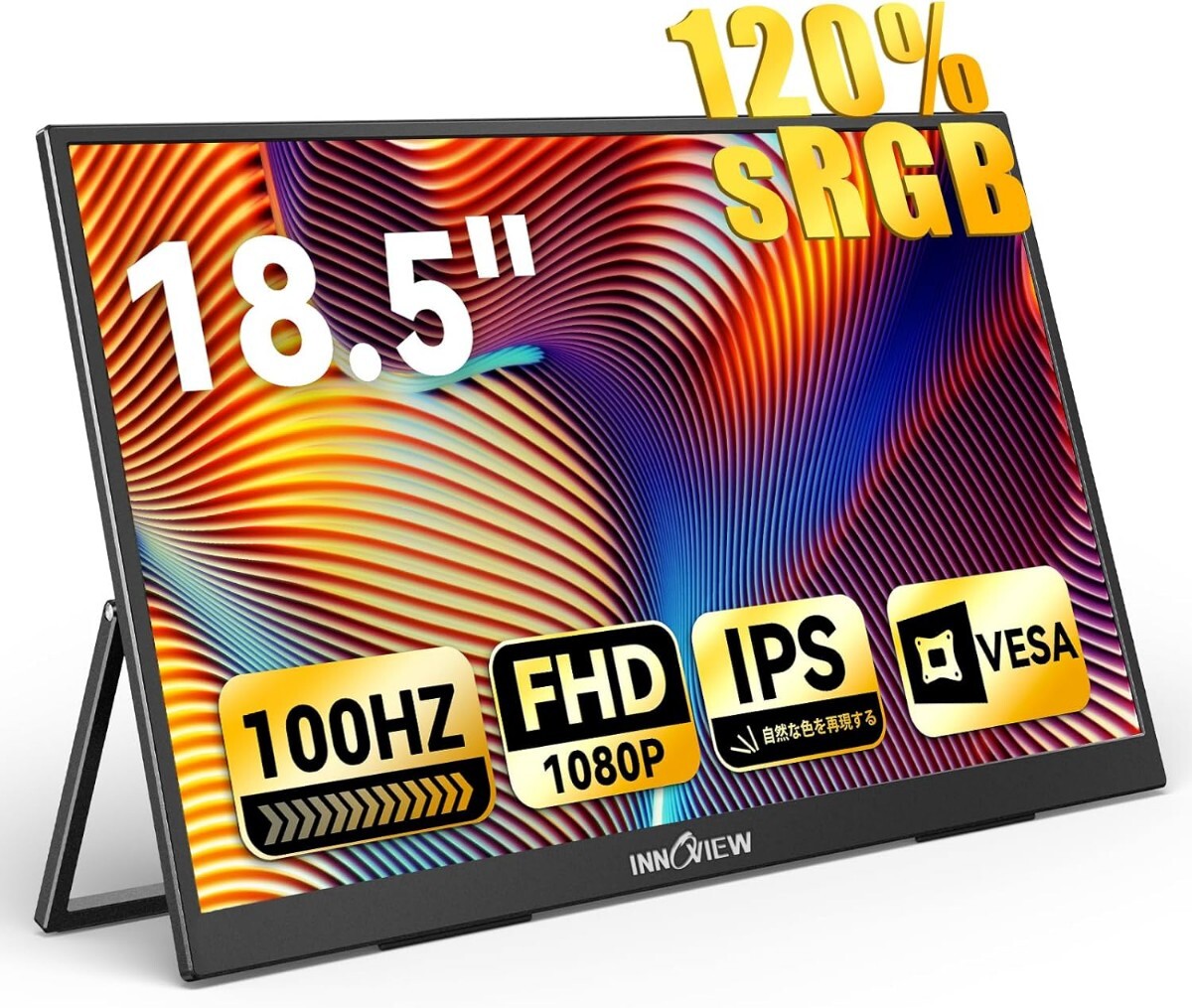モバイルモニター 18.5インチ InnoView モバイルディスプレイ 120%sRGB 100Hz FHD 1920x1080 IPS液晶パネル 非光沢 VESA対応 フル機能Type-C HDRモード FreeSync対応 ブルーライト機能
