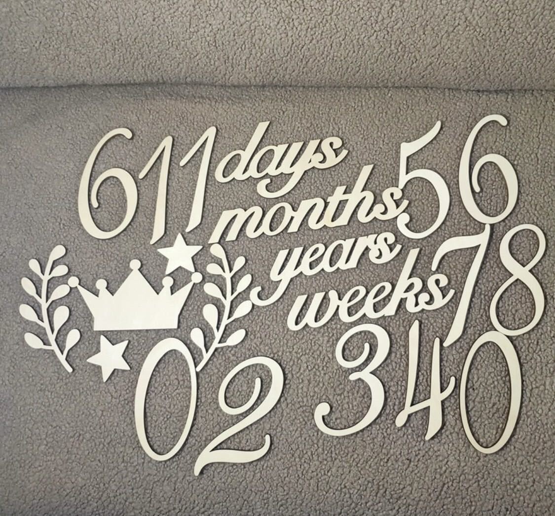 赤ちゃんの月齢フォトや誕生日、マタニティフォトなどに使用できる木製レターバナーです。すべての数字がそろっているので誕生日や記念日に使えます。