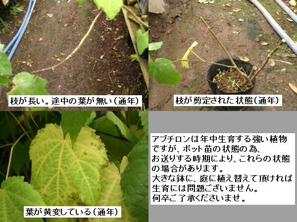 ・ポットや鉢に留まる為、下葉の黄変や花が少ない等の状態の場合がございます。植え替えて頂ければ生育には問題ございません。