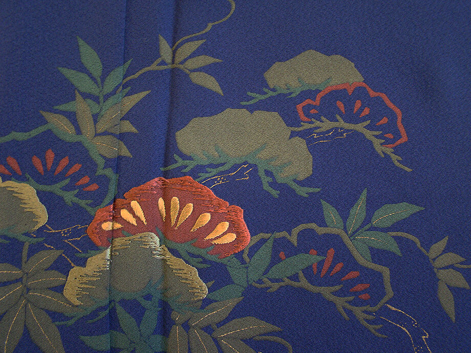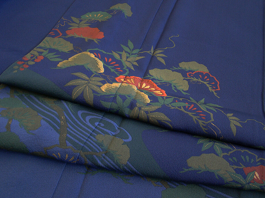 | 商品説明 | こちらのお品は「単衣」ですので5月、6月、9月にお召頂ければと思います。 着物には、大きく分けて「袷(あわせ)の着物」と「単衣(ひとえ)の着物」と「夏着物」があります。 反物(表地)を着物に仕立てるときに、裏地類をつけるものを袷の着物、 つけないものを単衣の着物と呼び、胴裏や八掛といった裏地がつかない一枚ものの着物です。 また裏地がないため、座る時などにヒップのラインが目立たないよう、 居敷当て(いしきあて)の生地をつけることもあります。 居敷当ては付いておりません。 とてもしなやかなさらりとした手触りの着心地良い涼やかなちりめん地の生地、 渋い濃藍色地に深緑、赤茶、海松色等の松や流水柄の染柄に金彩加工仕立て、 正統派のお着物として一枚は欲しい素敵なお着物です。 |