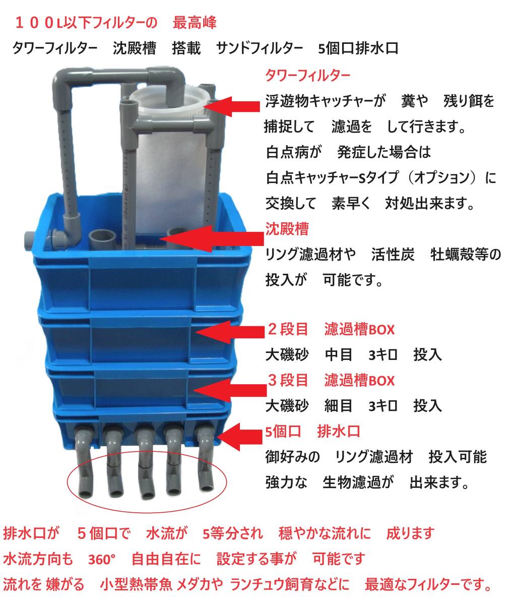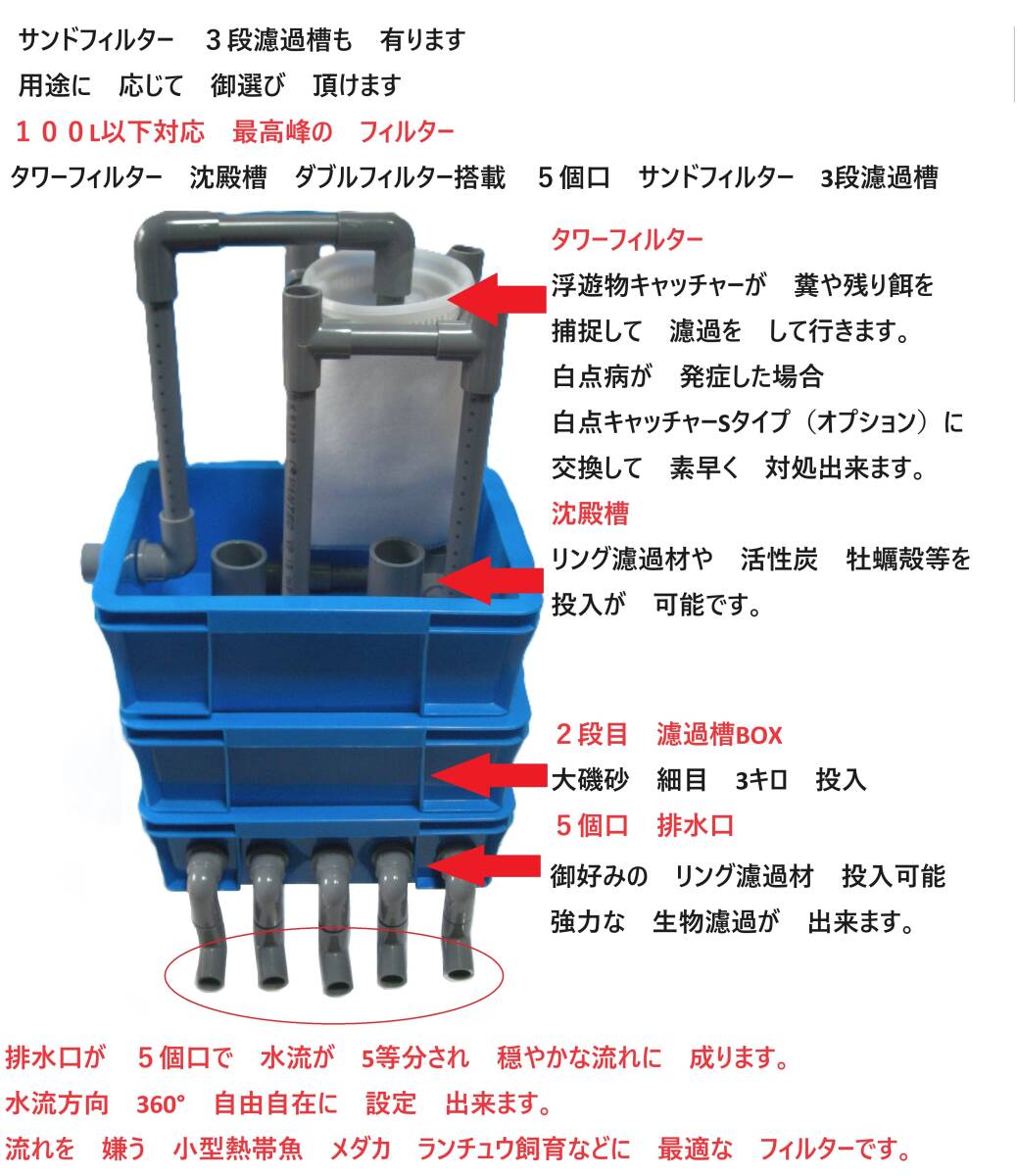 排水口 5個口 魚に優しい水流 サンドフィルター