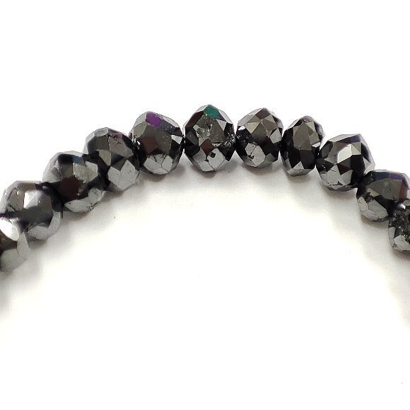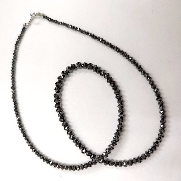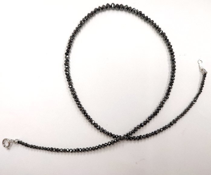 合計、20.00カラット 約4.5mm ~ 約2.0mmの天然ブラックダイヤモンドをグラデーションにセットされた豪華なルースネックレスです。全長は、約42センチで引き輪等の金具は、プラチナ850 が使われてます。天然石故のキズ等が見られます。使用感による擦れキズが確認できますが、ヨレや歪みはございません。 |