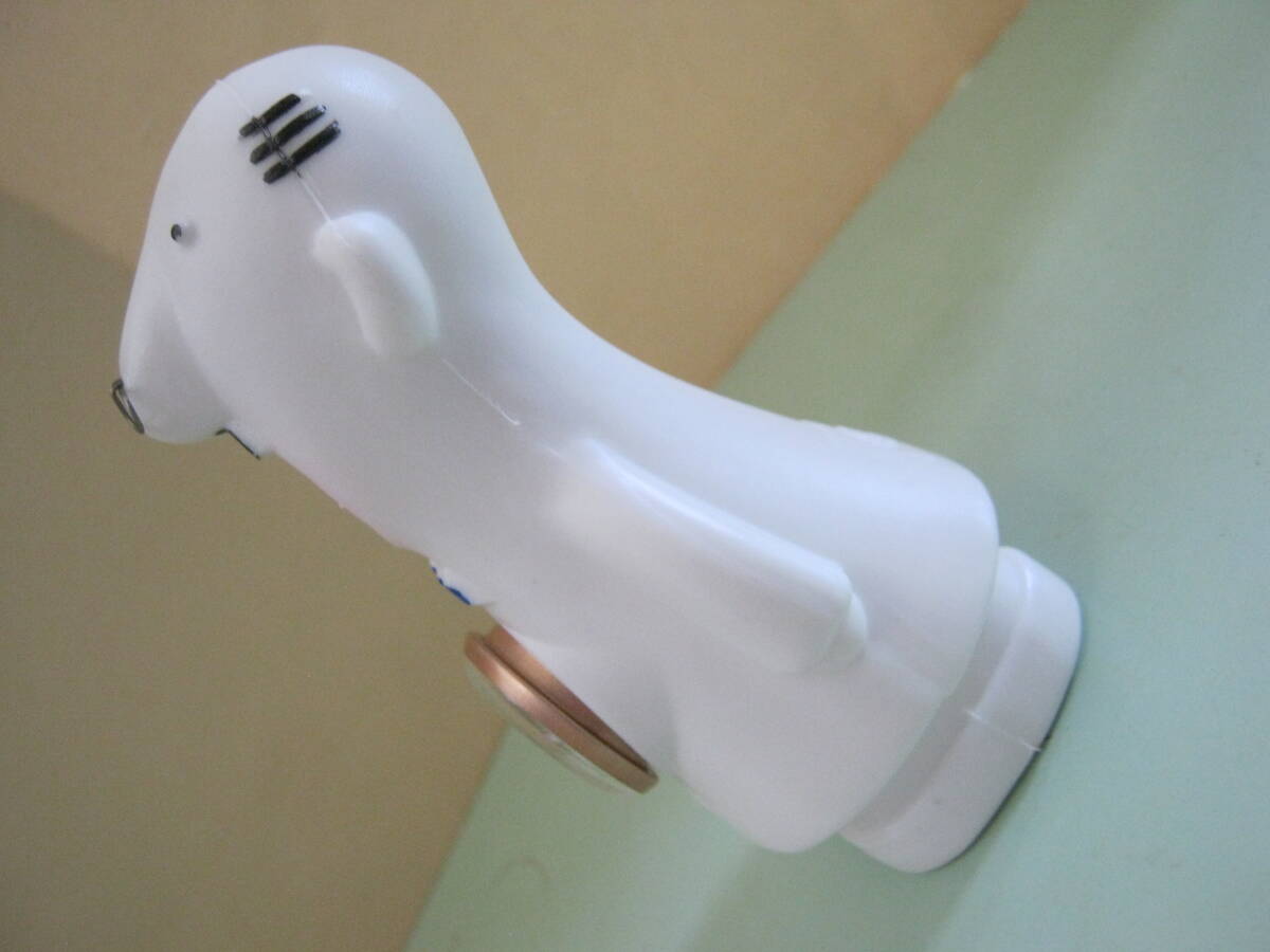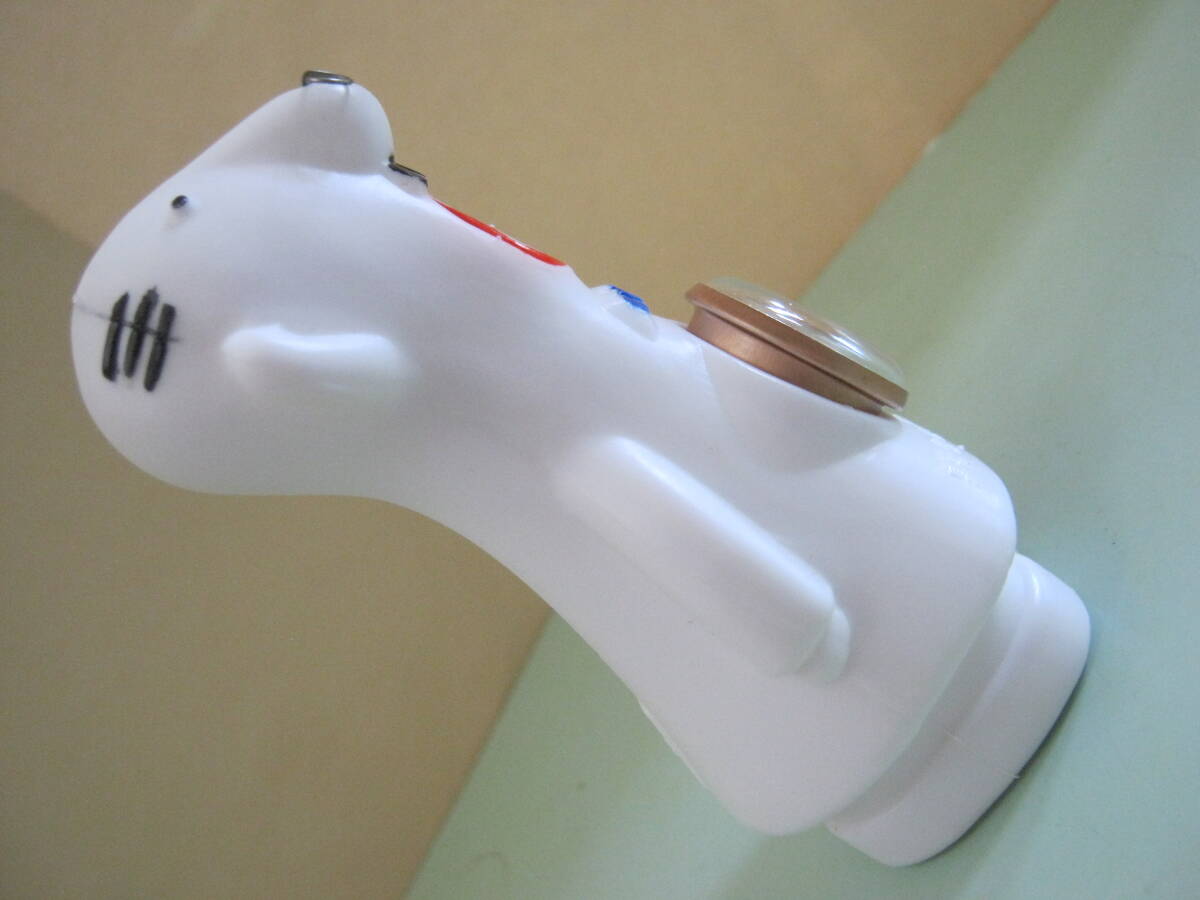 ナショナル【霜なし博士(温度計付き)ポリ製人形・National 冷蔵庫2ドア花束のキャラクター販促品1970年代】
