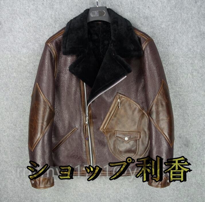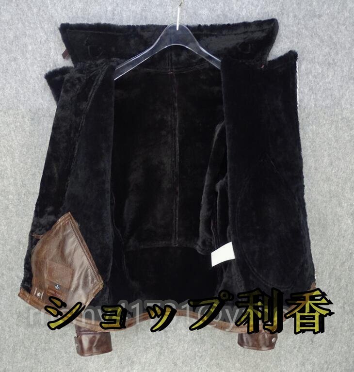 で高級な毛皮一体★防寒性バッチリ本革★フライトジャケット毛皮一体 防寒服 ラムレザー 天然革