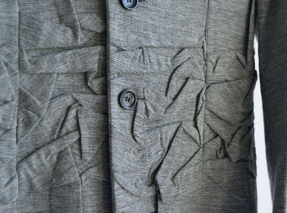中の造りや生地も手の込んだもので、色味や織りは都会的なコンクリート色と重なり、建築物を思わせる表情です。