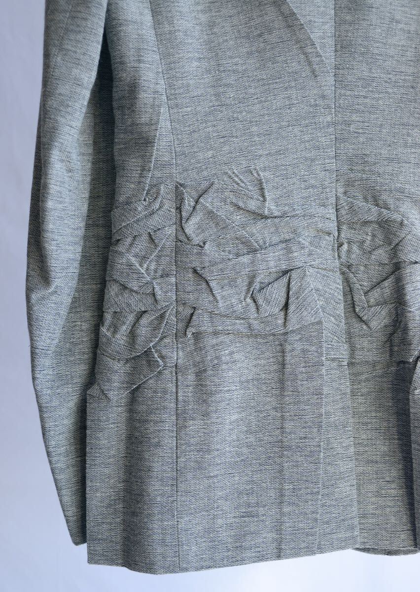ウエスト部分にぐるりと一周、生地をクシャクシャと集めてプレスし、その状態で固定してあります。
