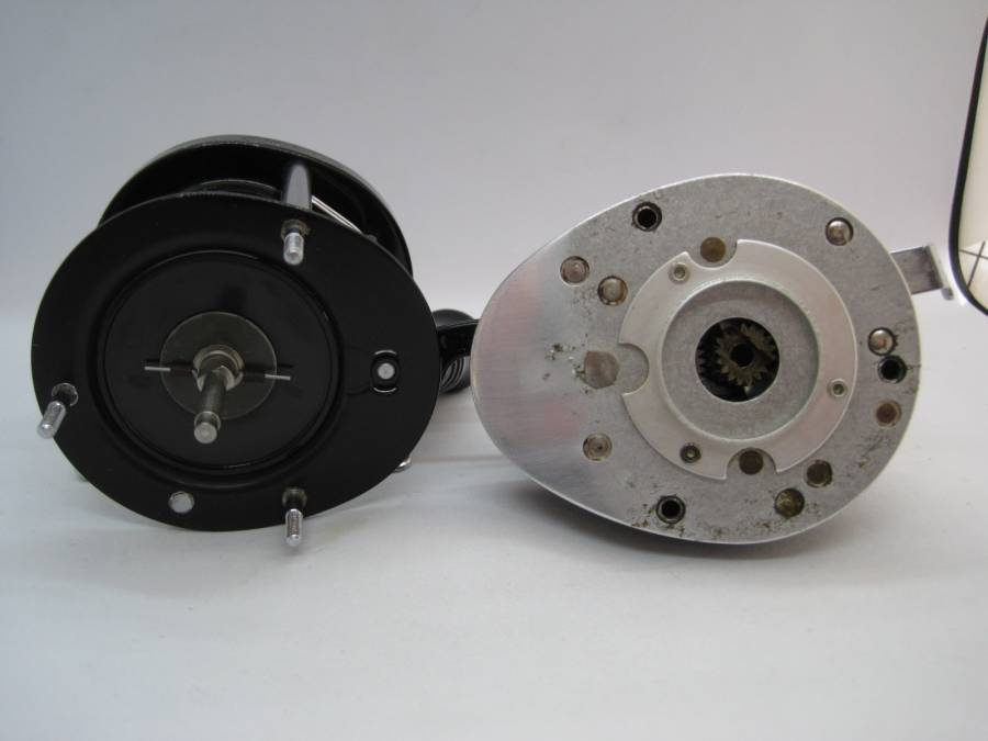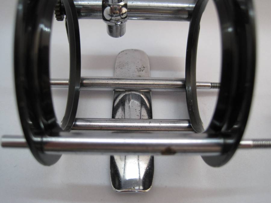 -サイドプレートやフレーム、ハンドル、スプール等はアルミ製で、めっきされたピラーやフート、ブレーキ調節つまみ等は真鍮製です。ハンドルノブはラバー製です。