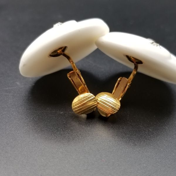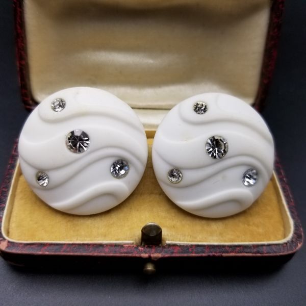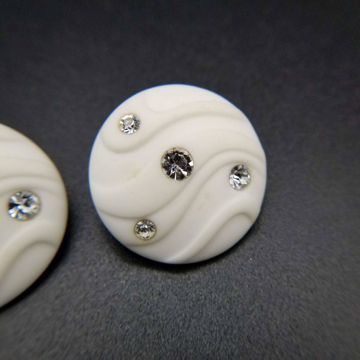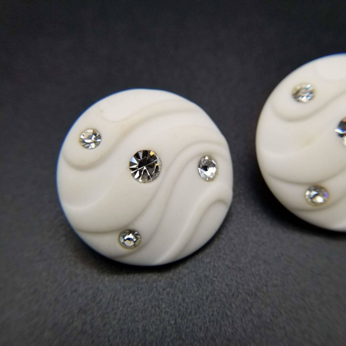 白 ホワイトラウンド ラインストーン装飾 ヴィンテージ クリップイヤリング コスチュームジュエリー YNJ7