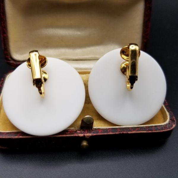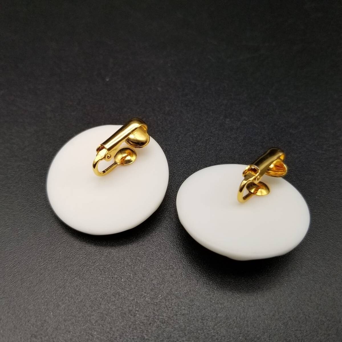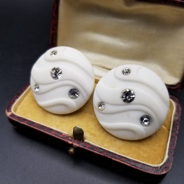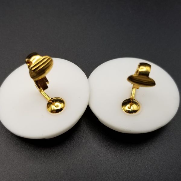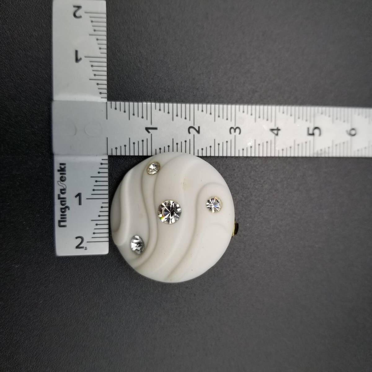 白 ホワイトラウンド ラインストーン装飾 ヴィンテージ クリップイヤリング コスチュームジュエリー YNJ7