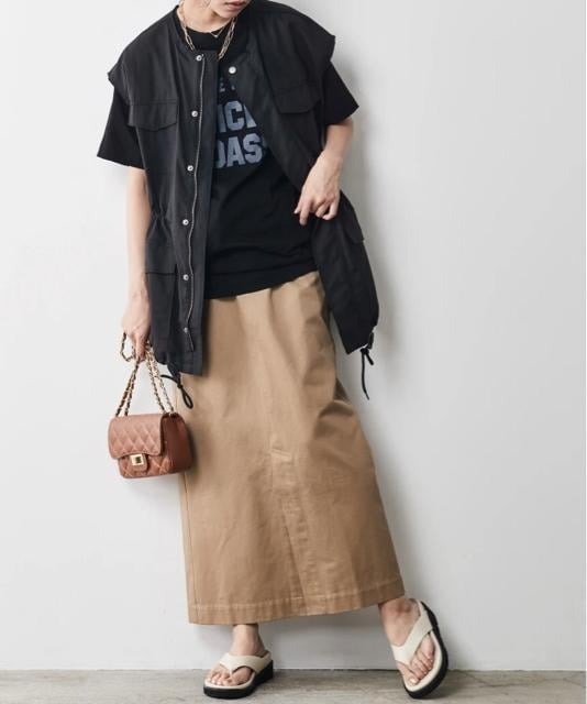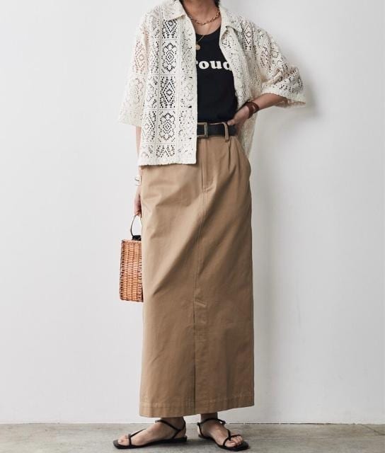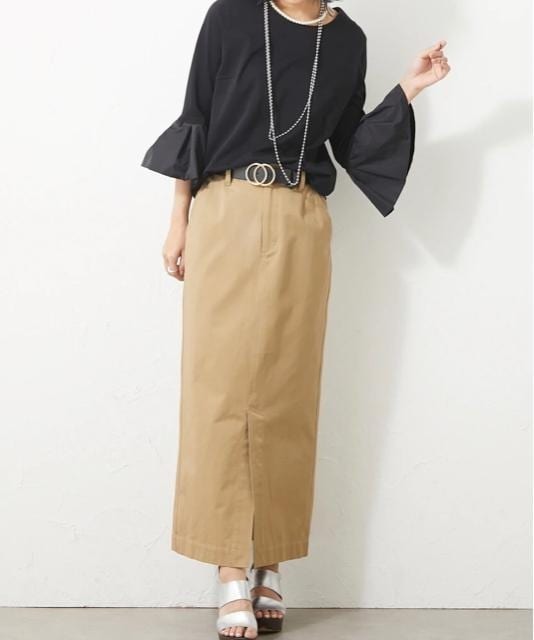 新品☆3Lベージュ系♪マキシ丈タイトスカート♪コットン100%☆b817