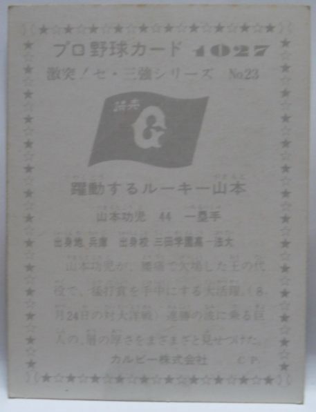 カルビープロ野球カード 76年#1027【山本 功児(読売ジャイアンツ巨人G)】1976年 昭和51年おまけ食玩トレーディングカード【中古】送料込
