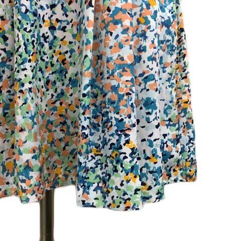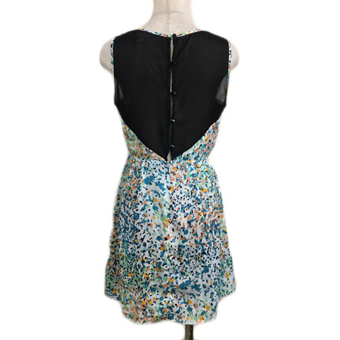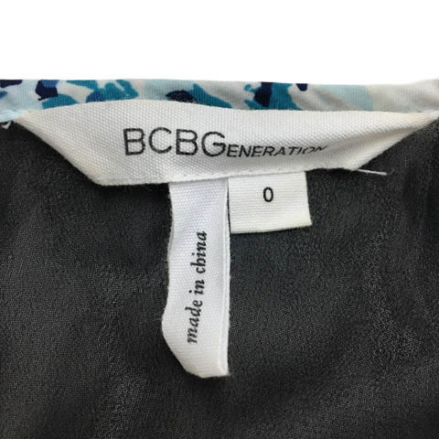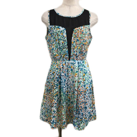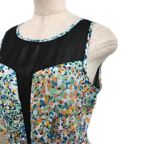ビーシービージェネレーション ワンピース チュニック フレア Aライン ミニ 切替 透け感 シアー 総柄 マルチカラー ノースリーブ 0 黒 白