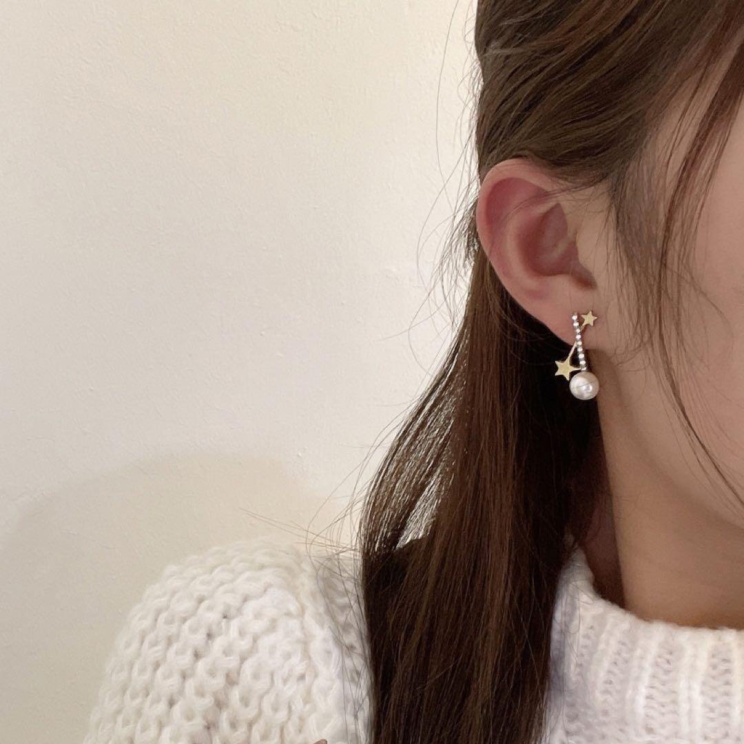 新品 パールのピアス 星のピアス ラインストーンのピアス レディースピアス シルバー925ピアス アレルギー対応