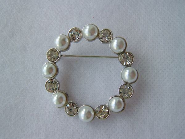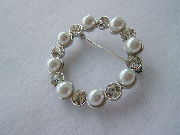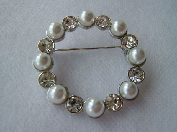 パール&ラインストーンビーズブローチ