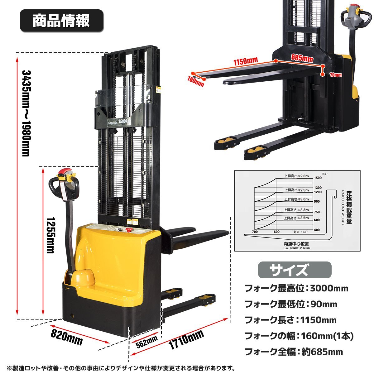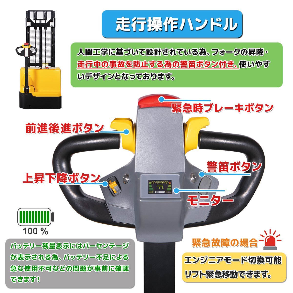 ●新品!自走式電動スタッカー 1500kg ハンドフォークリフト 1.5t 幅685mm 電動フォークリフト ★1年保証有【営業店止め】