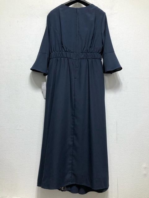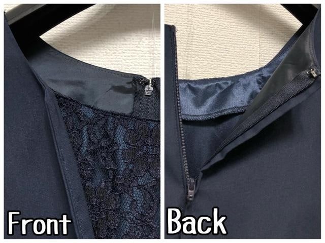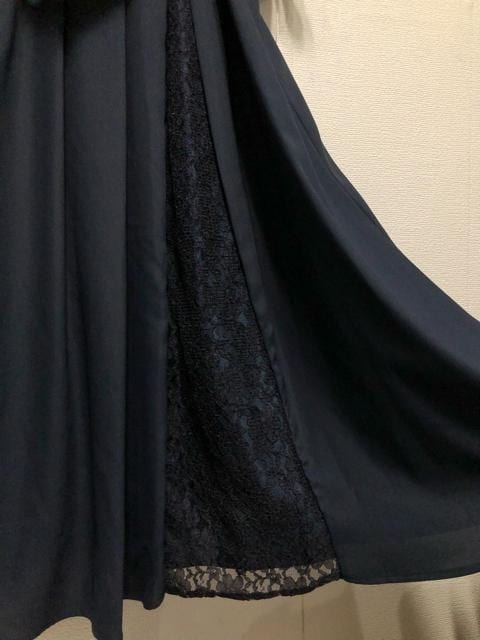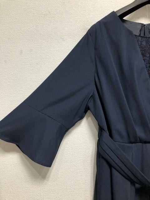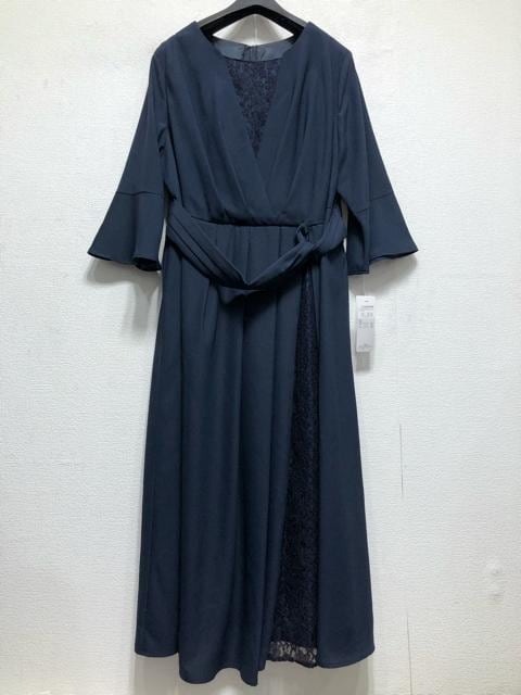 新品☆4L♪紺系♪アシメデザイン上品レースきれいめワンピースドレス♪☆u963