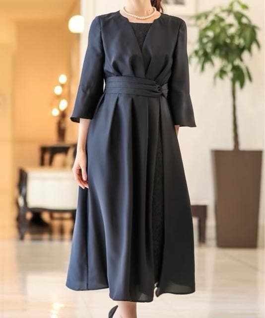 レースが上品な7分袖ワンピースドレス♪