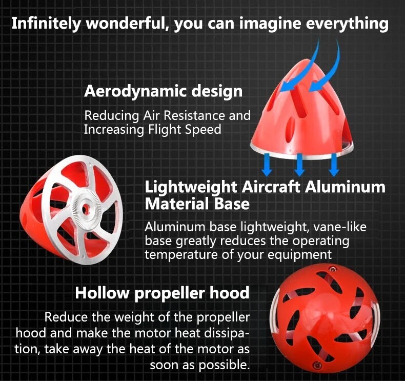 このスピナーはユニバーサルで、電気飛行機やガソリン飛行機に使用できます。