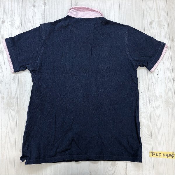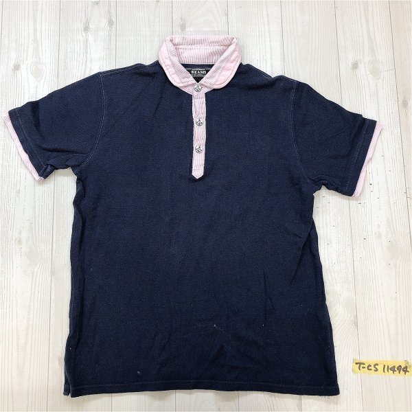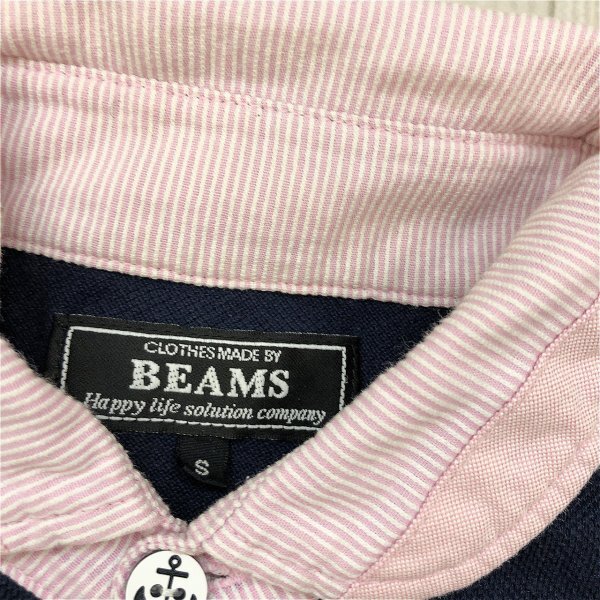 BEAMS ビームス メンズ 襟ストライプ クレリック 鹿の子 半袖ポロシャツ S 紺 です。
