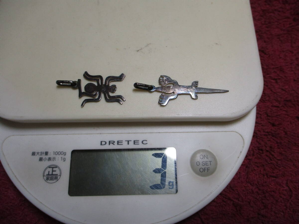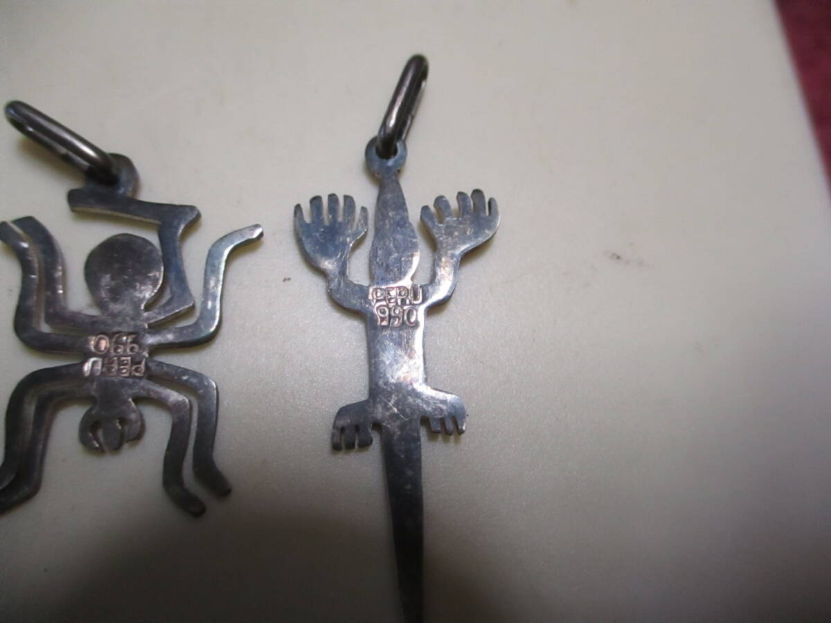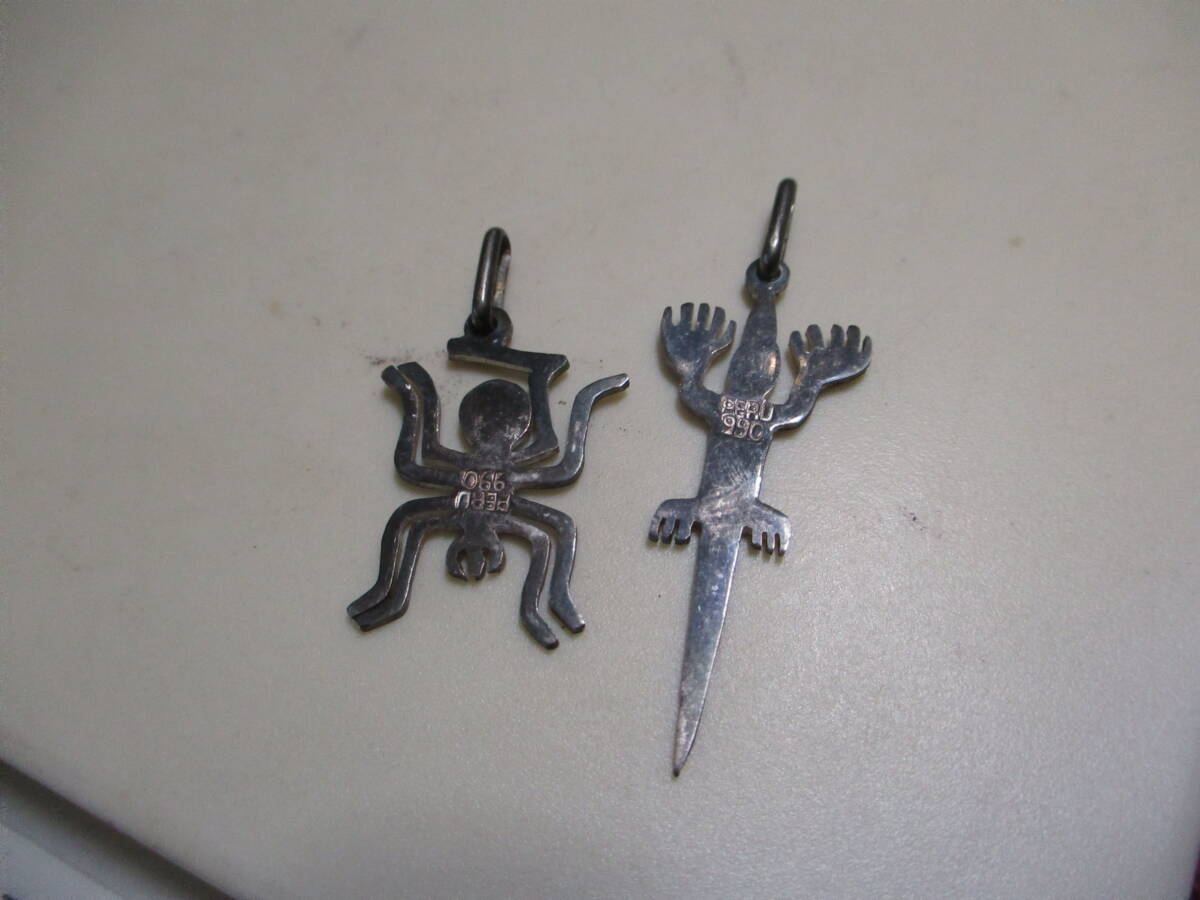多分未使用/綺麗ペルーで購入2点★ナスカの地上絵 蜥蜴 ワニ/蜘蛛 PERU 990 刻印有り シルバー銀 ペンダント★P