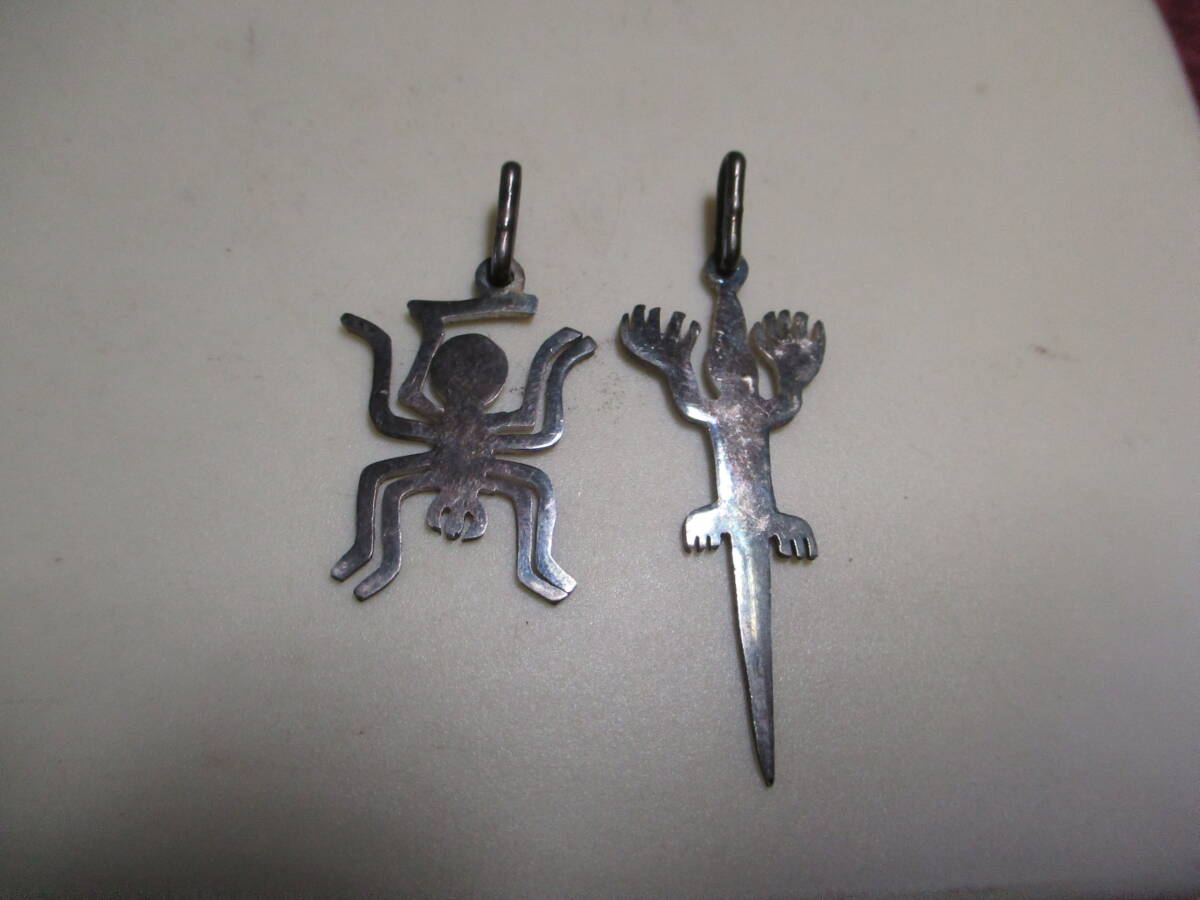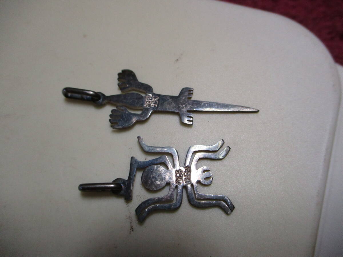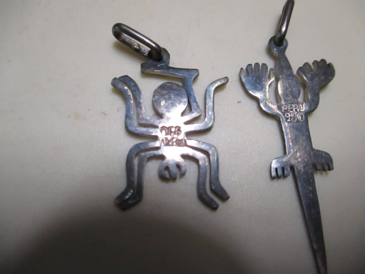 多分未使用/綺麗ペルーで購入2点★ナスカの地上絵 蜥蜴 ワニ/蜘蛛 PERU 990 刻印有り シルバー銀 ペンダント★P