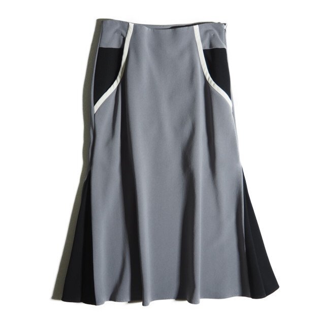 M4934f27 ▼AKANE UTSUNOMIYA アカネウツノミヤ▼ トリアセテート ポリエステル ストレッチ フレアスカート グレー 36 / ミモレ丈 春夏