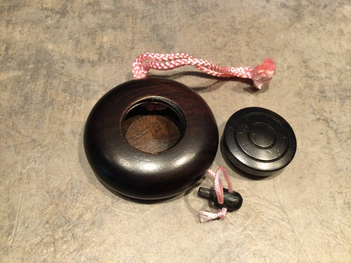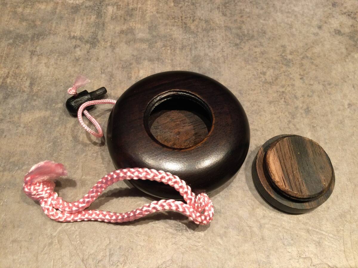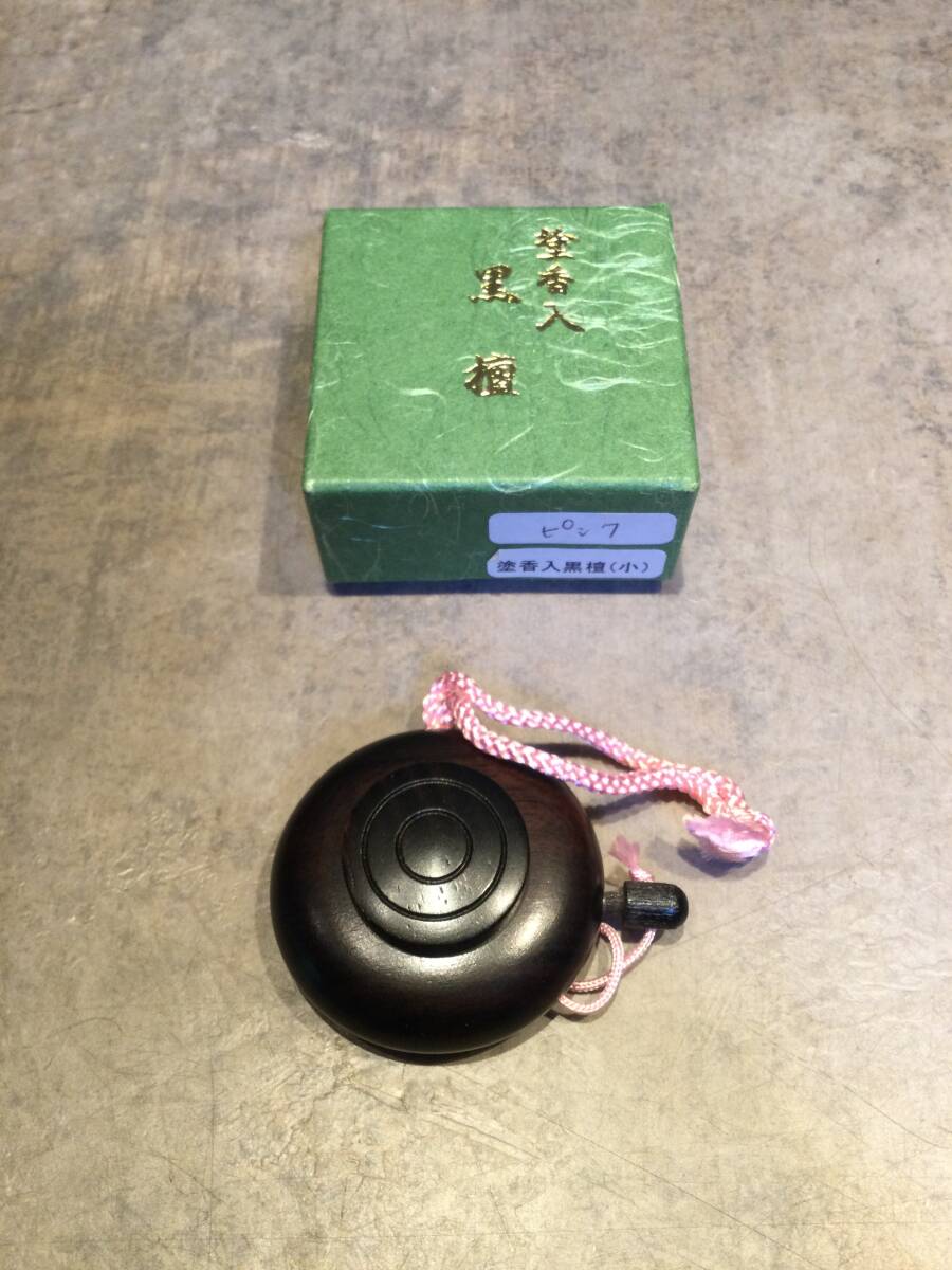 新品・未使用 塗香入 黒檀(小) 共箱 ピンク紐 仏具 塗香 御香①