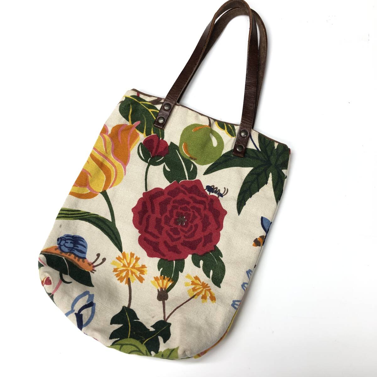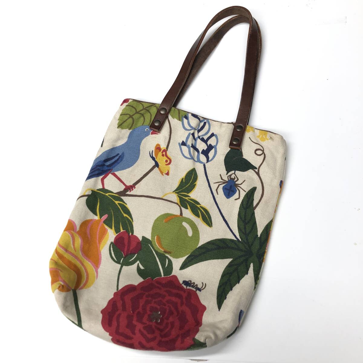 ha-na×jobus tetile 北欧 スウェーデン ヨブスのハンドプリント生地 トートバッグ レザーハンドルの出品です。