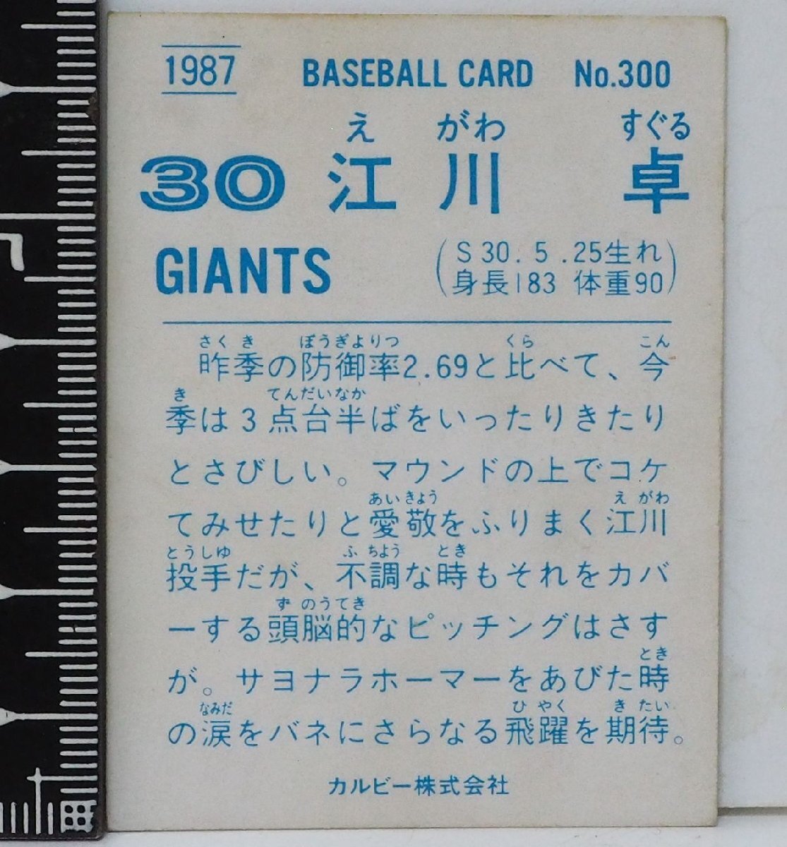 87年 カルビー プロ野球カード No.300【江川 卓 読売ジャイアンツ巨人】昭和62年 1987年 当時物 Calbee おまけ 食玩BASEBALL【中古】送料込