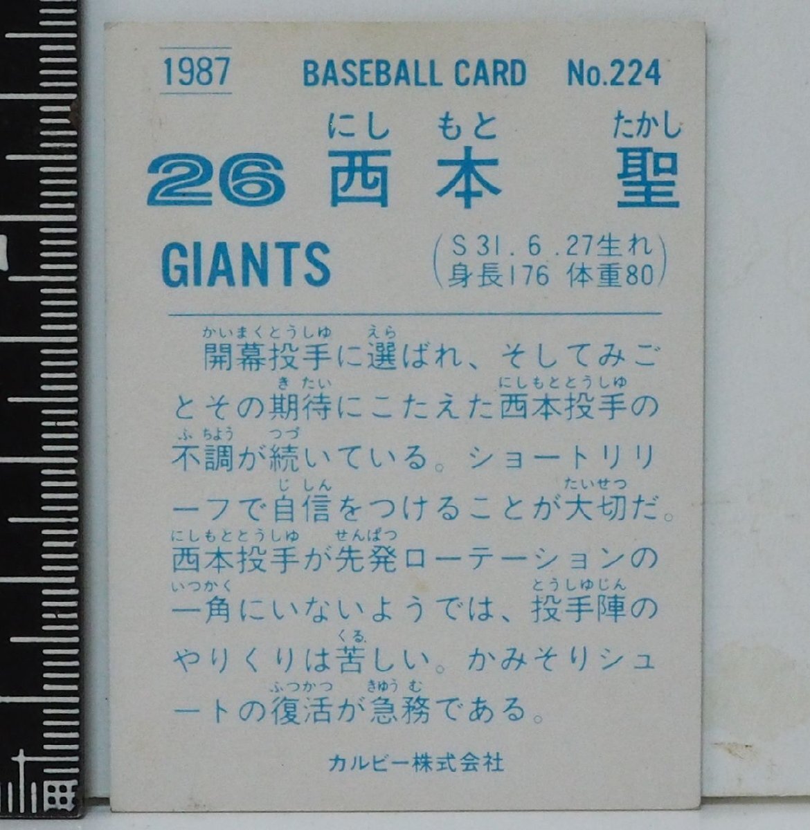 87年 カルビー プロ野球カード No.224【西本 聖 読売ジャイアンツ巨人】昭和62年 1987年 当時物 Calbee おまけ 食玩BASEBALL【中古】送料込