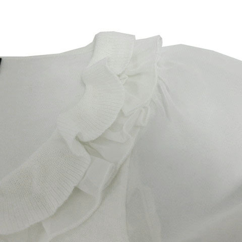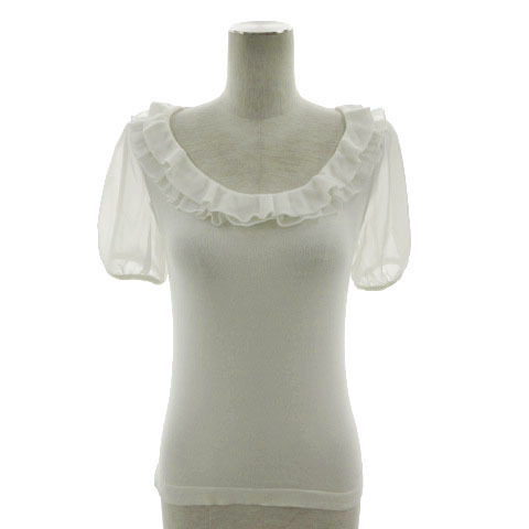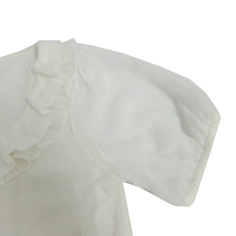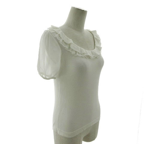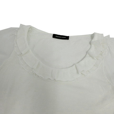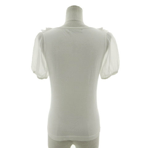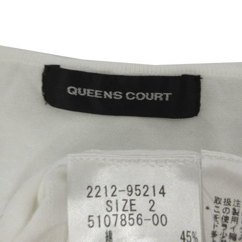 クイーンズコート QUEENS COURT ニット フリルネック 半袖 レース切替え シースルースリーブ コットン混 ホワイト 白 2
