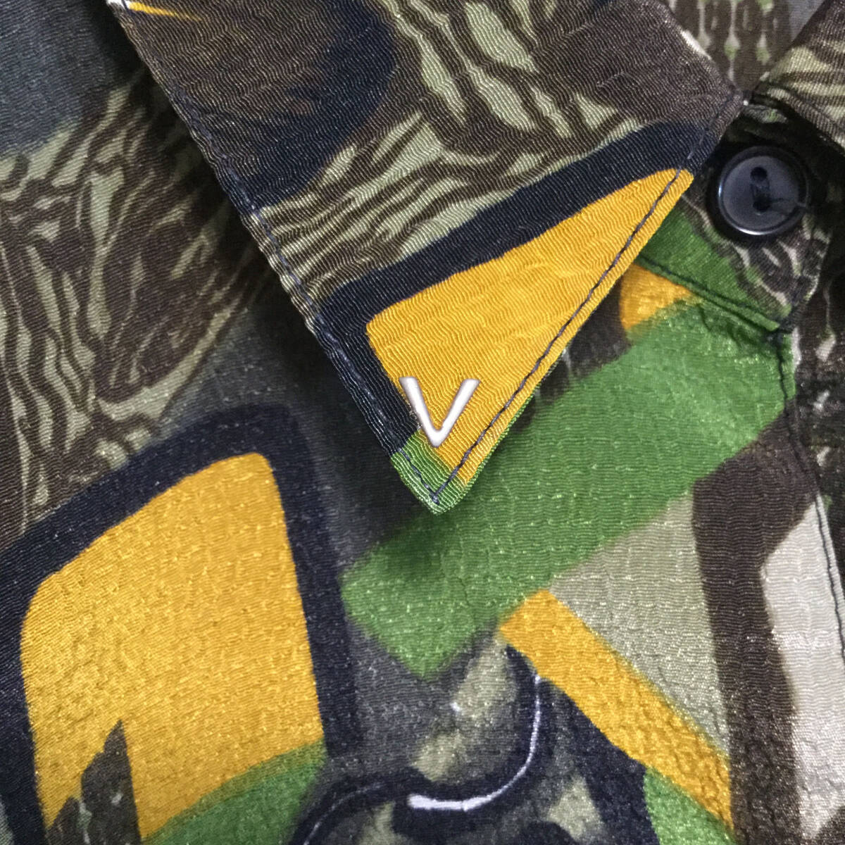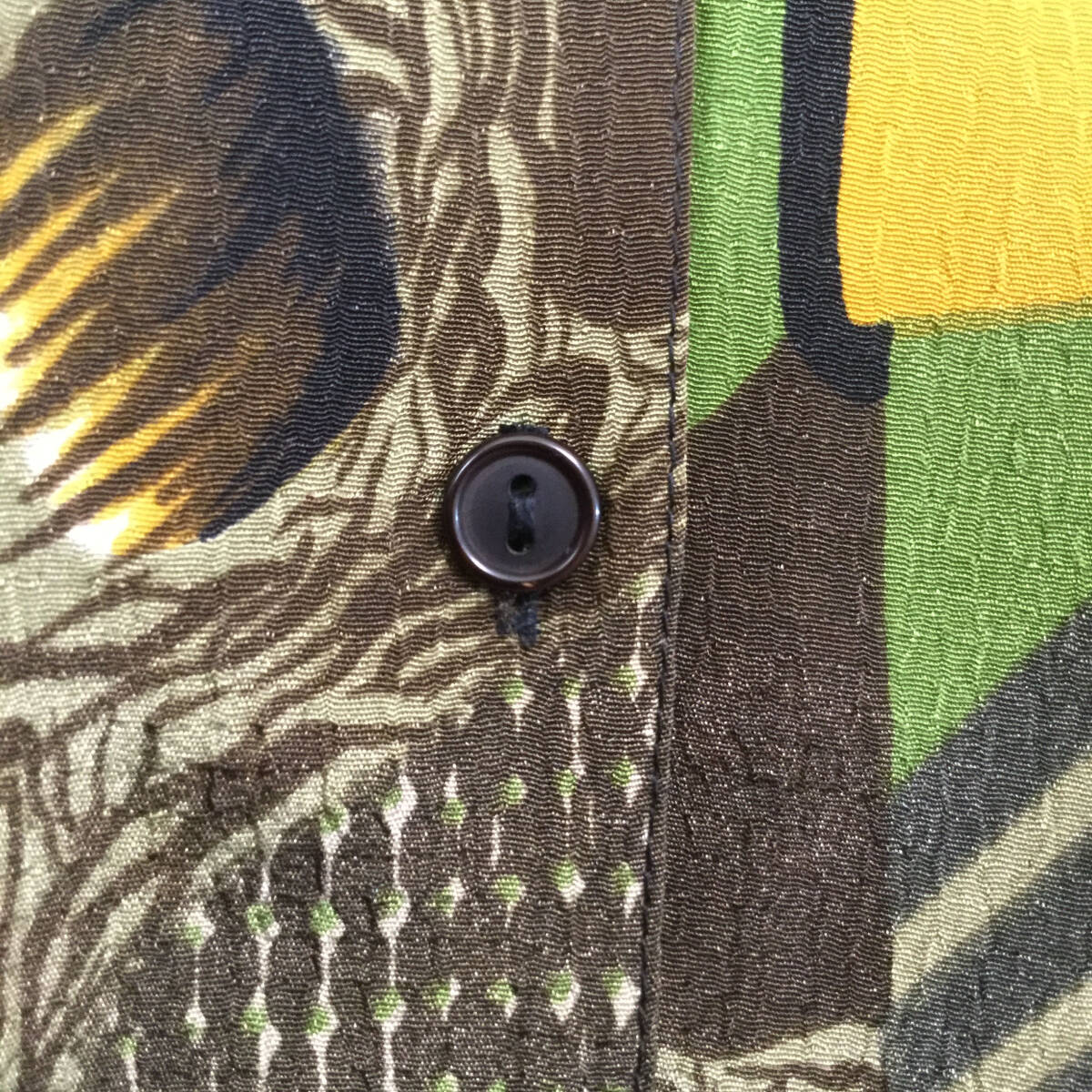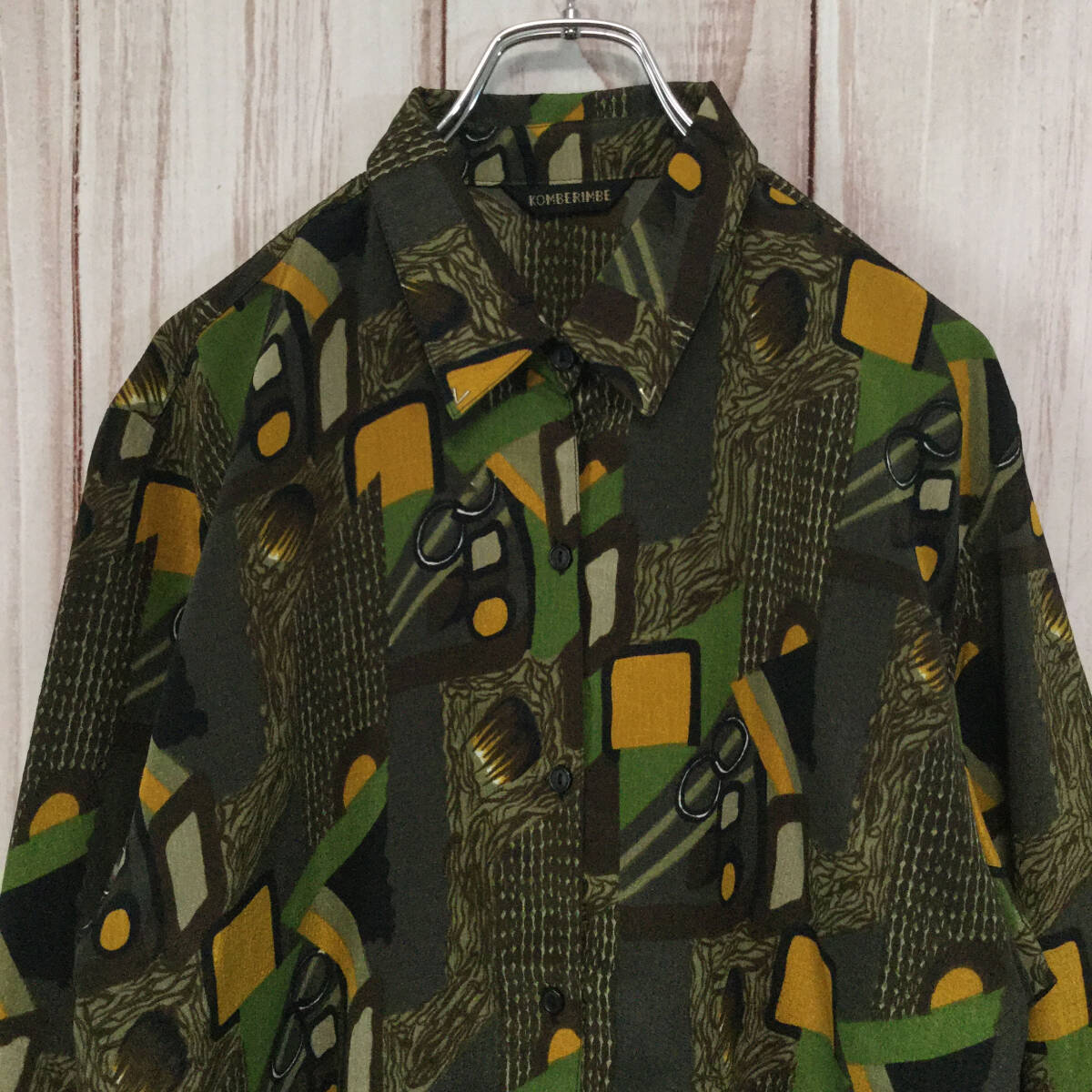 【長袖シャツ】 レトロ 総柄 アート柄 オーバーサイズ ダークカラー 光沢 L相当 ブラウン 古着 [231022-016]