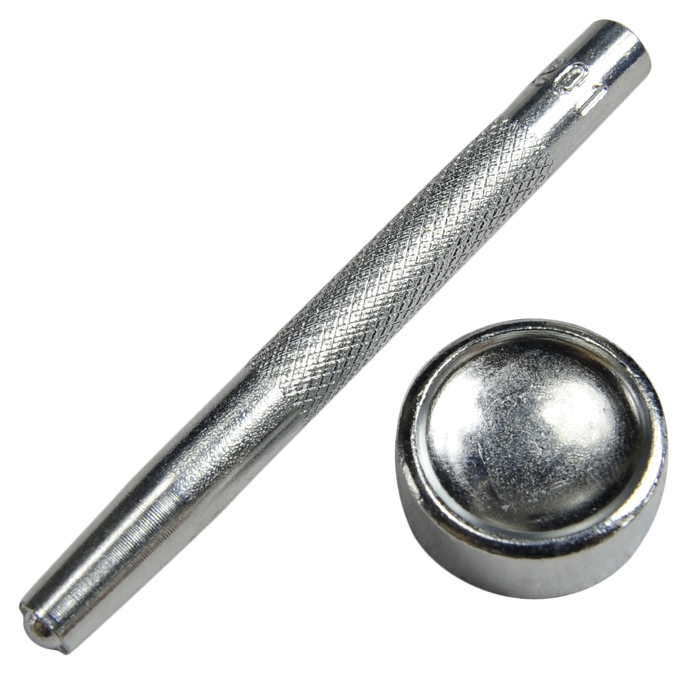 15mmのジャンパーホックを取り付けるための打ち棒と台座のセットです。