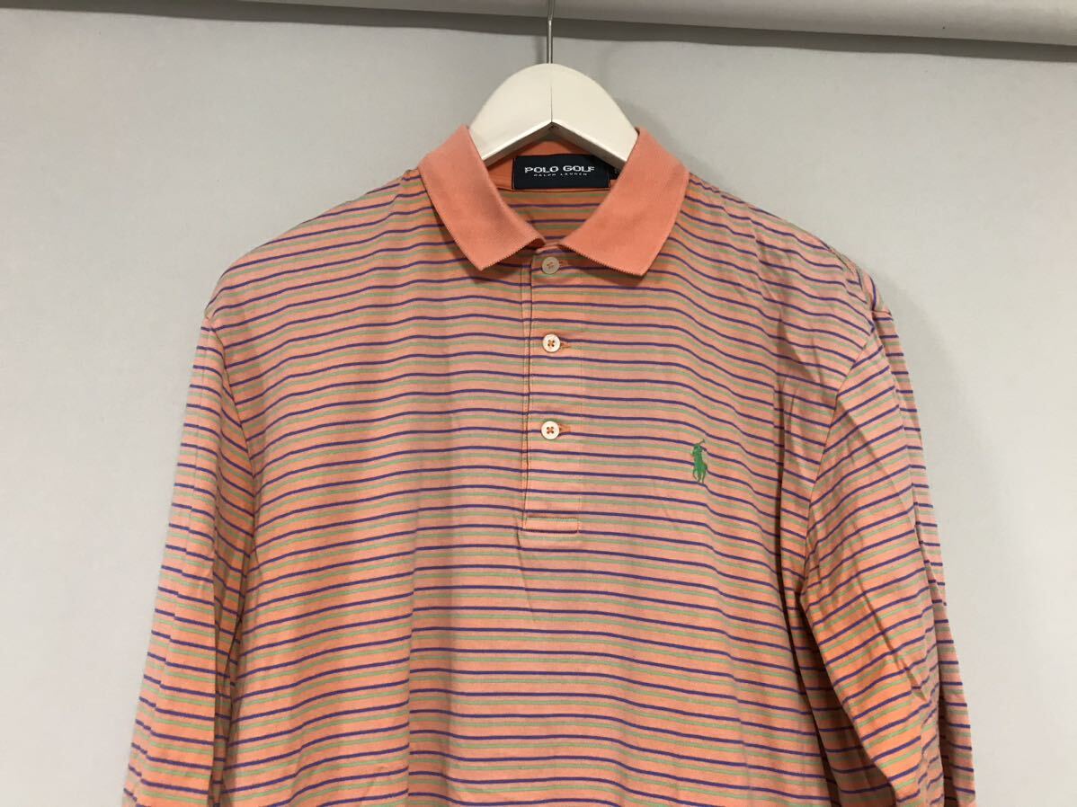 商品名:本物ポロゴルフラルフローレンPOLO GOLF RalphLaurenコットンボーダー柄グラデーション長袖ポロシャツメンズサーフゴルフピンク日本製S