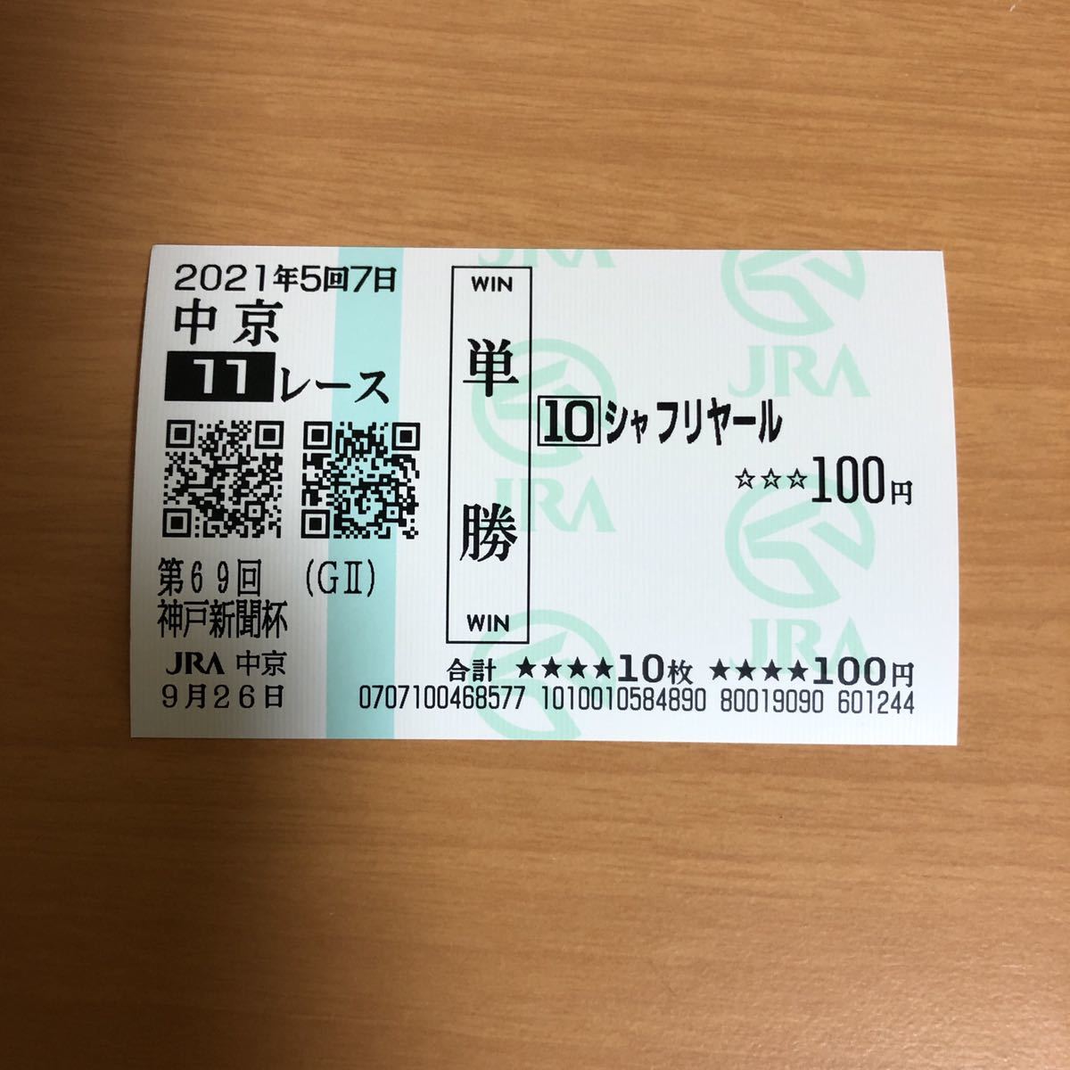 シャフリヤール 神戸新聞杯 現地単勝馬券 数量9