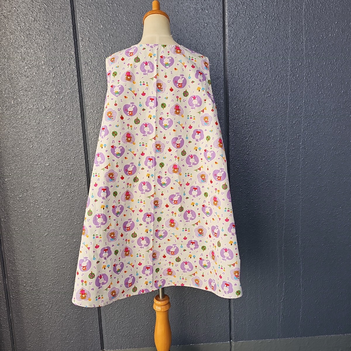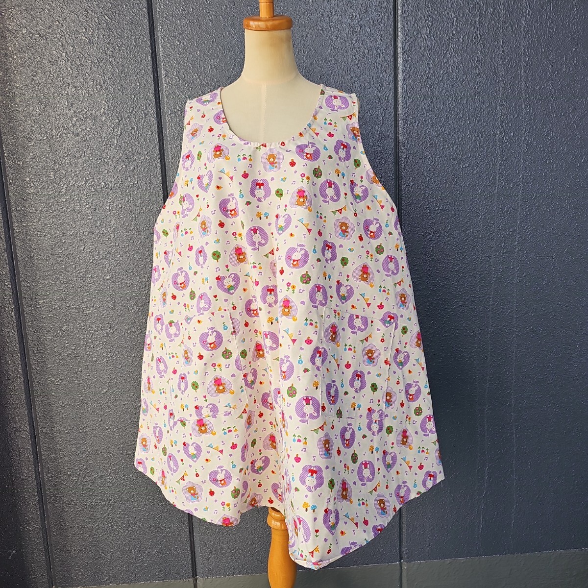 金具、紐が無いので保育士さん、介護士さんにも着用出来ると思います。裾に向かって広がりがあるので、妊婦さんも着用出来るかと思います。